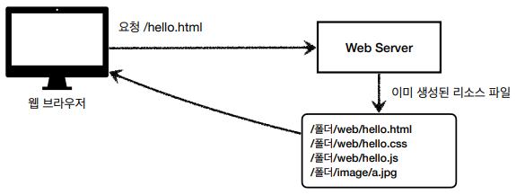 - 정적 리소스 : 정적(파일) HTML, CSS, JS, 이미지, 영상