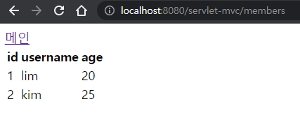 - 모델에 저장해둔 members(회원 리스트)에서 member(회원)를 하나씩 꺼내 item 변수에 담고, 출력하는 과정을 반복