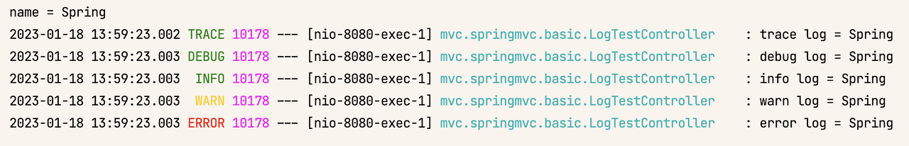 로그 레벨을 설정해줄 경우 설정 로그보다 높은 레벨이 로그에 출력된다. 따라서 로그 레벨을 원하는 대로 설정해 필요한 로그만 남도록 할 수 있다.