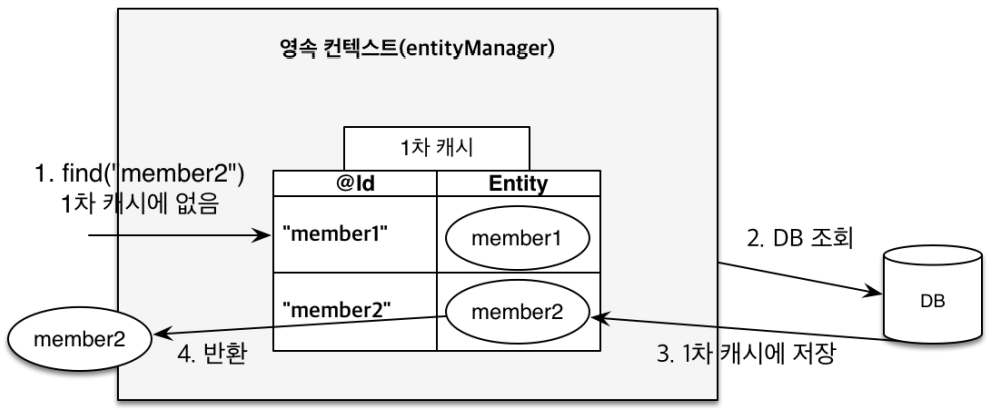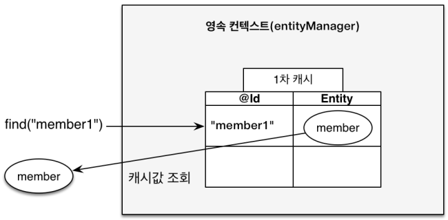 em.find("member1") 조회 시 캐시에 있는 값을 그대로 가져온다.