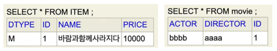 - 데이터 저장시 INSERT SQL 2번 호출해야 한다. (insert Item, insert movie)
