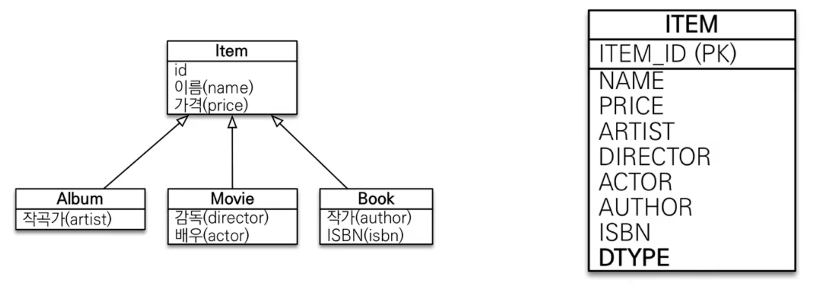 - 관계형 데이터베이스에는 상속 관계가 존재하지 않는다.