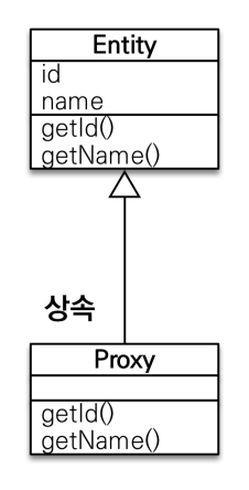 - 프록시는 실제 클래스를 상속 받아 만들어진다.
