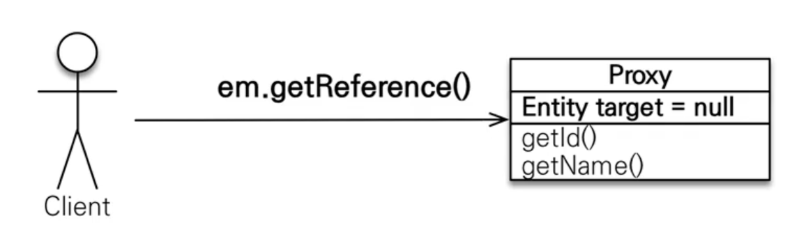 JPA에서는 프록시 객체를 호출할 수 있는 em.getReference()라는 메서드를 제공한다.