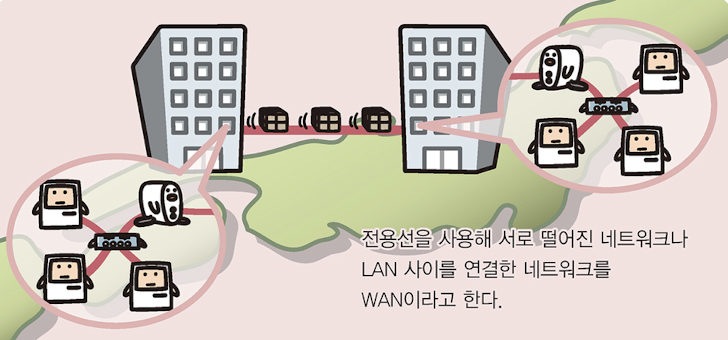 - 전용선을 사용해 서로 떨어져 있는 컴퓨터나 LAN 사이를 연결한 네트워크