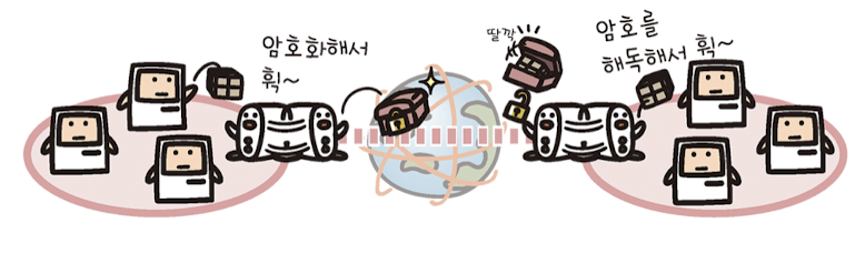 - VPN 장치가 통신 데이터를 암호화한 후 인터넷에 전송하며, 수신하는 쪽에서 암호를 해독해 내부 네트워크에 전송한다.