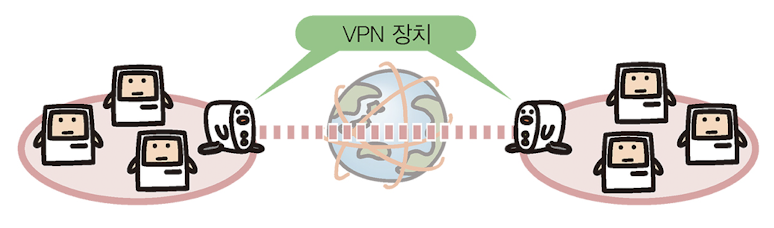 - 인터넷 VPN을 사용하려면 서로 연결되는 부분에 VPN 기능을 가진 기기를 설치해야 한다.