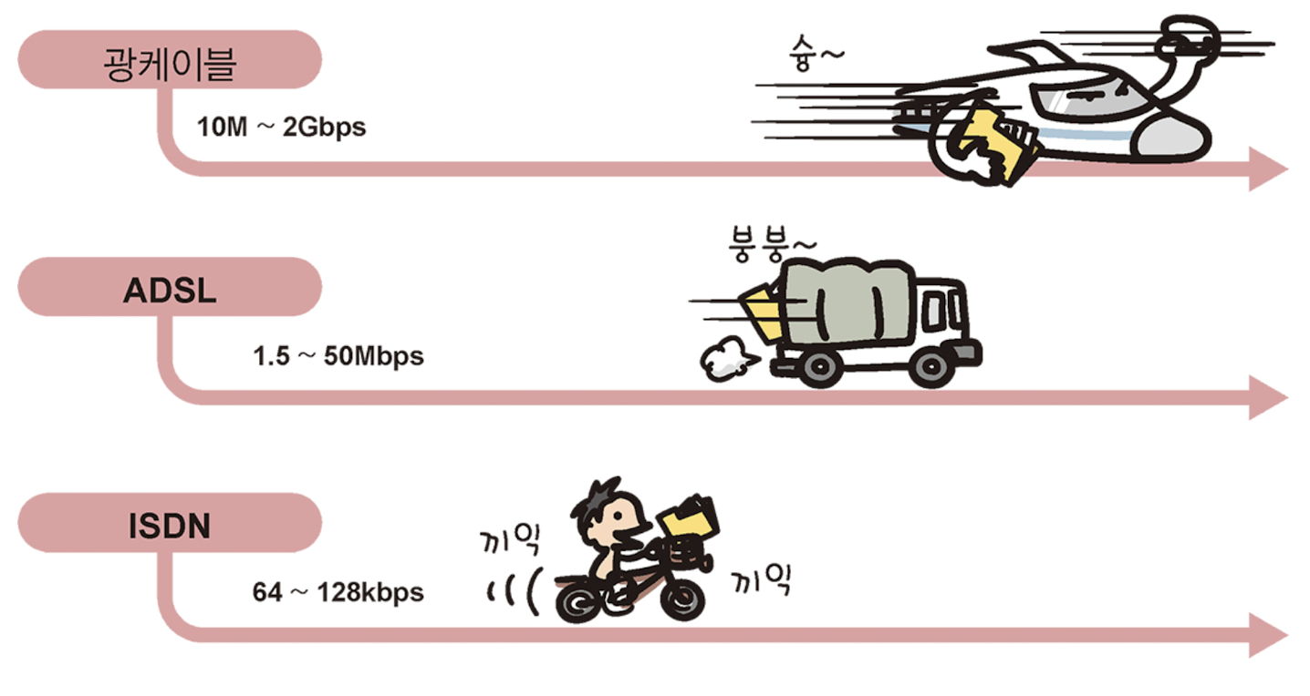 - 아날로그 회선에 비해 고속으로 안정적인 통신이 가능하다.