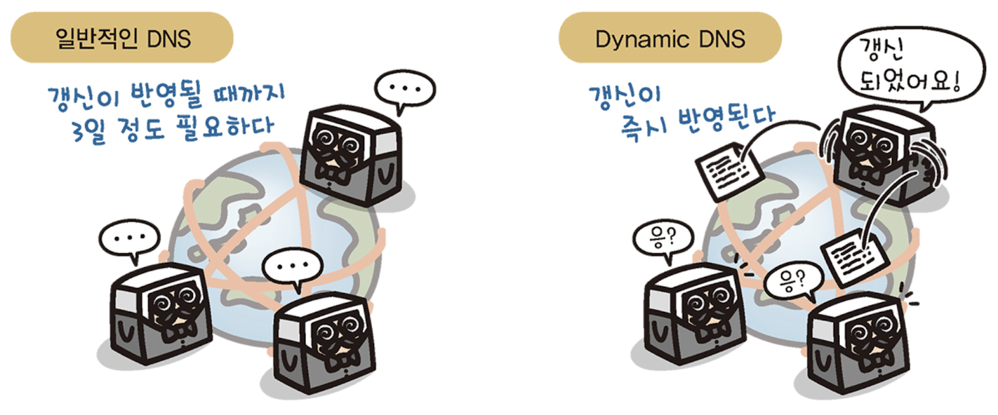 - 갱신이 반영될 때까지 3일 정도 시간이 필요한 일반 DNS와 달리 변경 사항을 곧바로 통지하기 때문에 변경 사항이 전 세계에 즉시 반영된다.