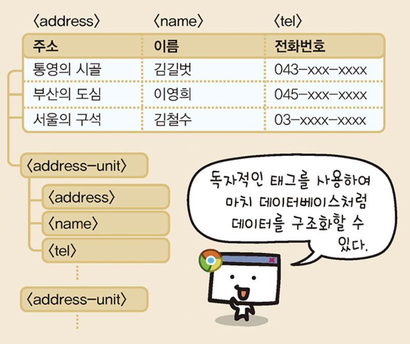 - 태그를 고유하게 정의해 데이터의 속성을 세밀하게 표현할 수 있다.