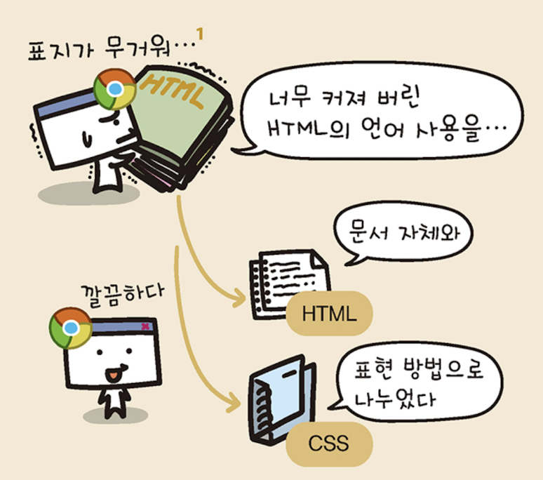 - CSS 등장으로 문서와 레이아웃의 정의가 분리