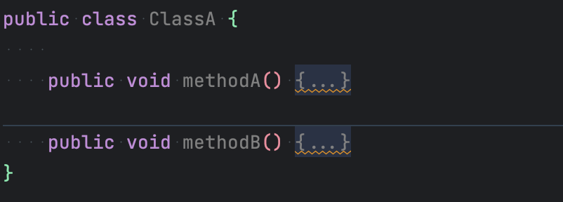 인텔리제이에서 클래스를 열었을 때 다음과 같이 자동으로 메서드를 한줄로 접어주는 기능이 있다.