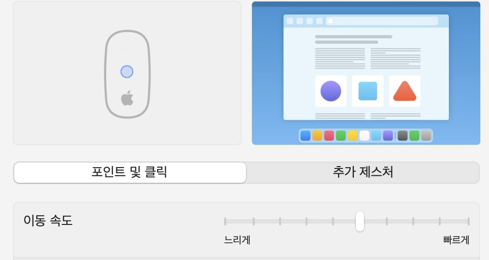 기본적으로 설정에서 마우스 이동속도를 조절할 수 있다.