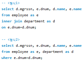| MYSQL | 공백 | 피연산자1 공백 피연산자2 | 't1' 공백 't2' |