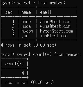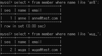 -- ex) SELECT name, email FROM member WHERE id IN ('anne','wuga')