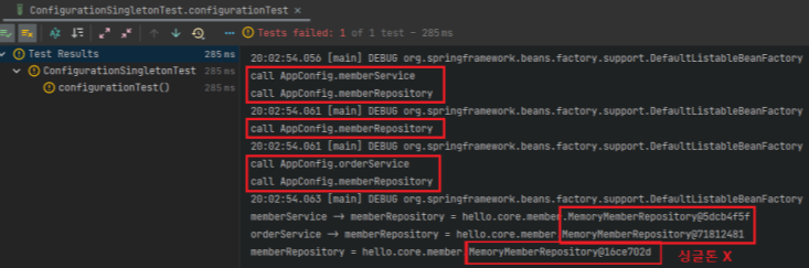 결과적으로 각각 다른 MemberRepository가 생성되면서 싱글톤이 깨지지 않나? 하는 의문이 들 수 있다.